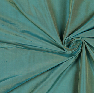 Get this look! These silk and silk/wool blend fabrics have dimension with their two toned powder blue and golden undertones.